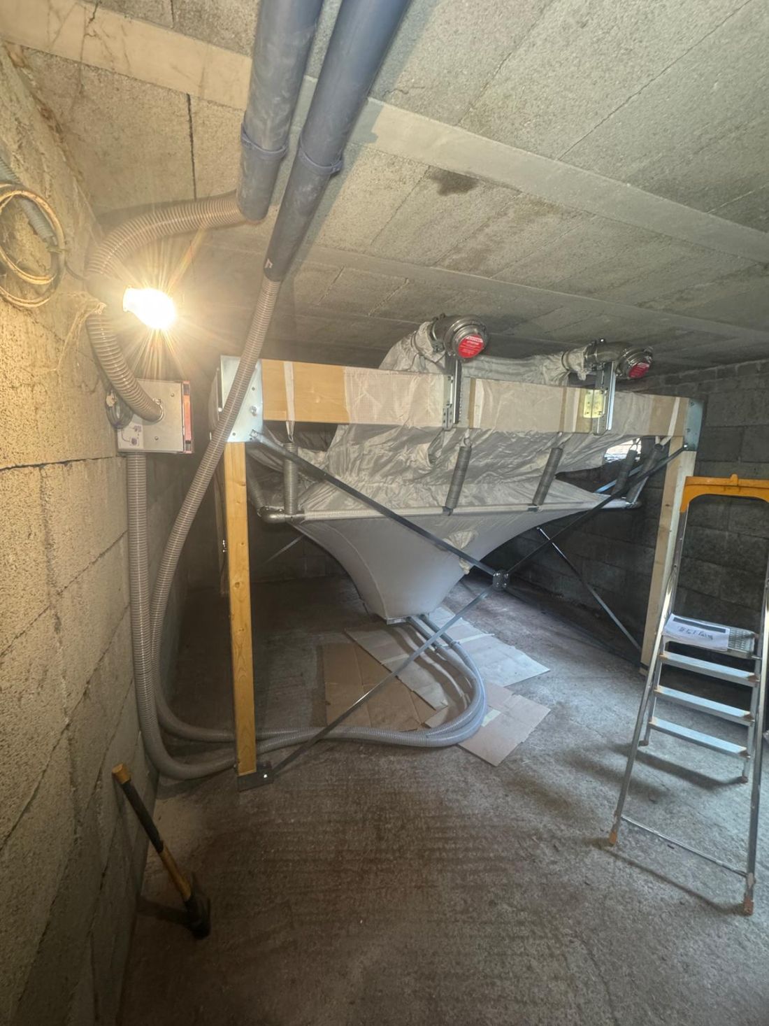 Einbau einer Wärmepumpe in einem Bürocontainer (Bild: Innen- & Außengerät)